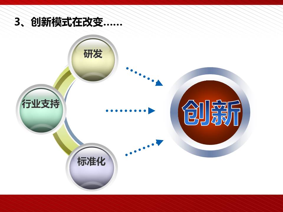 除了制造业的思维模式之外,创新模式也会发生转变。以前企业的创新都是单打独斗,企业创新以后申请专利,不让别人学习,只有让别人学习才能带动整体的创新,以前企业不这么干,工业4.0提出开放协同创新,未来对创新模式发生改变。