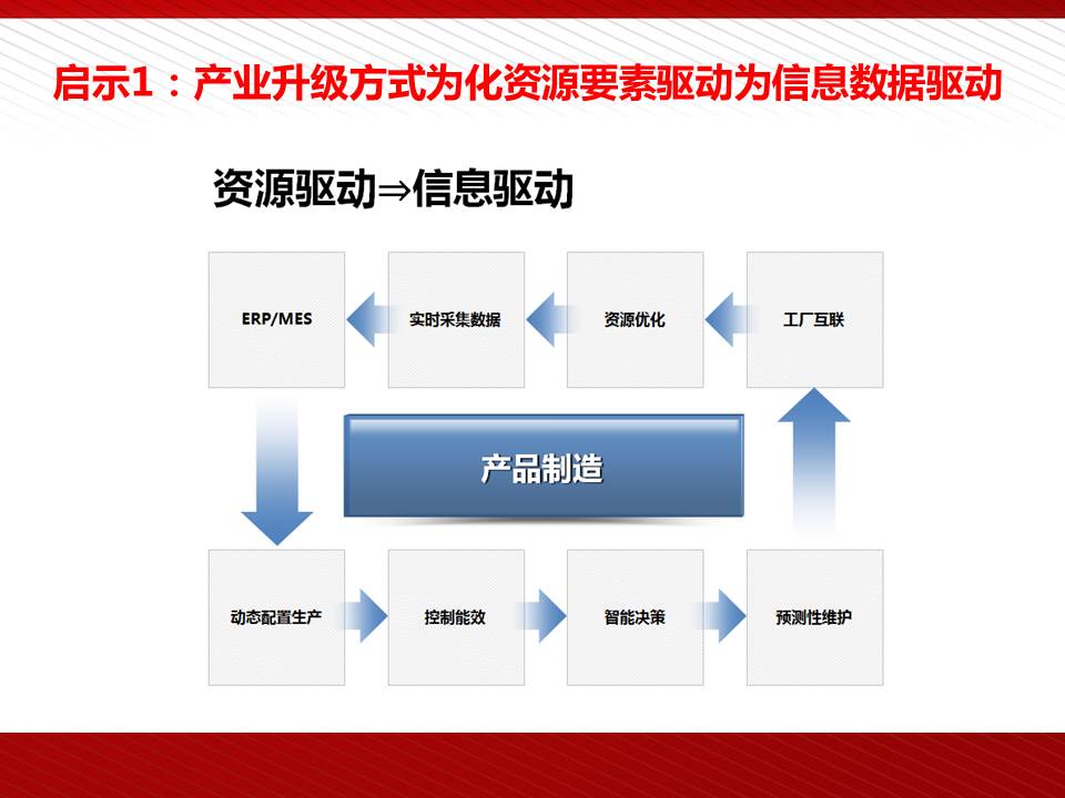 中国制造2025有一条主线,新一代信息技术与制造业融合为主线,这为我们指明了一个方向。发展新经济转型升级应该怎么办?应该按照这条主线的要求,化资源要素驱动为信息数据驱动,是转型发展的一个思路上的转变。