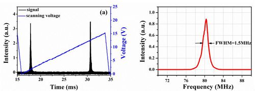 图:调Q光纤激光脉冲的单纵模特性与线宽